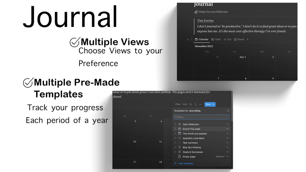 Inside the template is a simple to use Journal template with multiple views to use and Helper for your reflection: