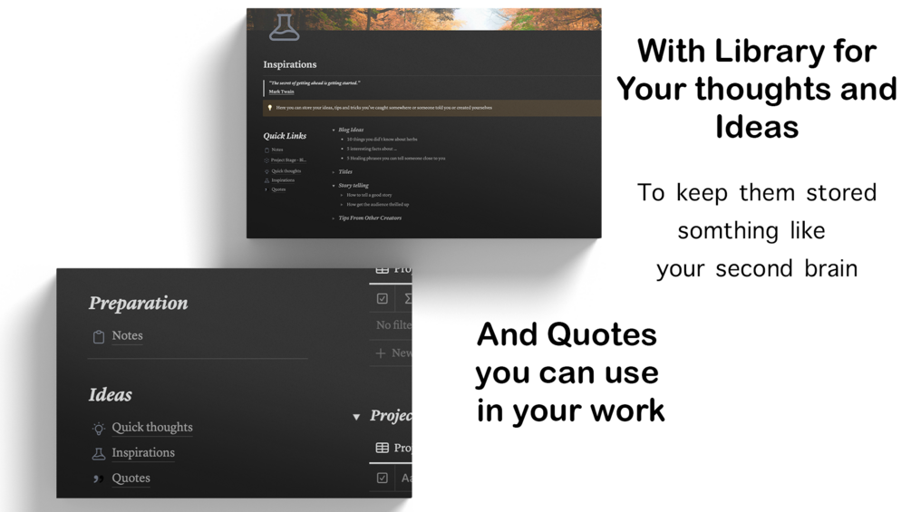 The Content Creators Bundle is a comprehensive package that includes a Content Creator Notion template, a GTD template, and a Finance template. The Content Creator Notion template is specifically designed to help content creators stay organized and productive with features such as a content calendar, social media tracker, and more. The GTD template is perfect for those who want to get things done efficiently and effectively, while the Finance template is ideal for keeping track of finances and budgeting. With this bundle, you can have everything you need to stay on top of your game as a content creator.